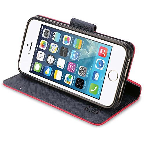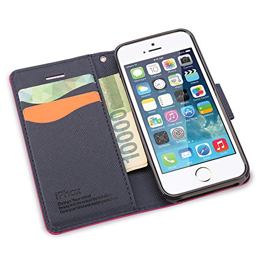 Title : iPhone 5 Case,iPhone 5s Wallet Case, Souldio™ Prequim Quality Flip Phone Protective Case Cross Pattern Cover Wallet Case for iphone 5 with Card Slot and Fodable Kickstand (Rose Blue)