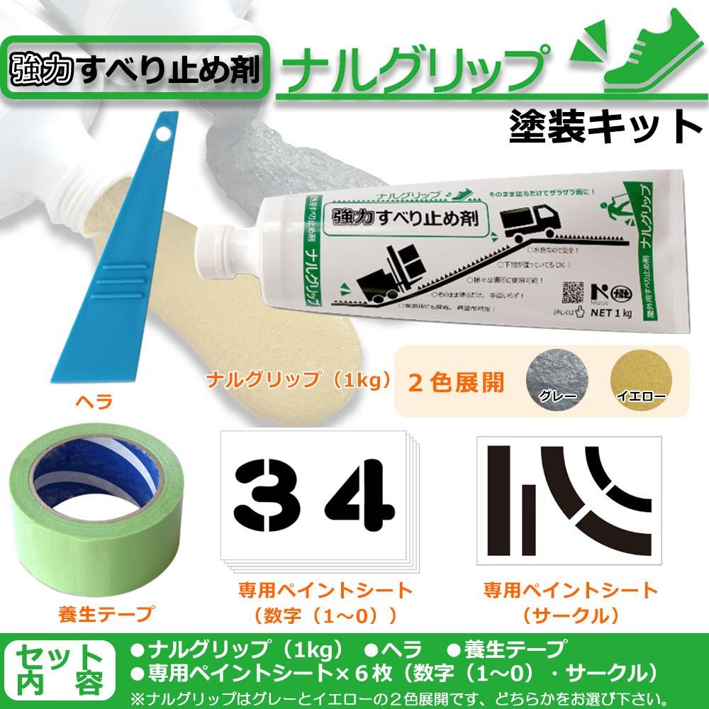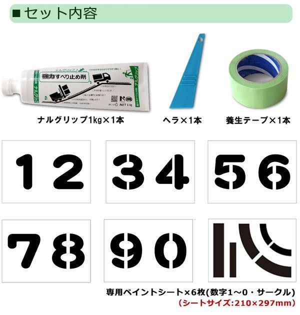 | セット内容 | ナルグリップ(1kg) 専用ペイントシート×6枚(数字1~0・サークル) ヘラ 養生テープ |