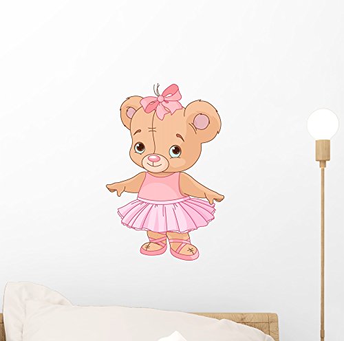 Cute Teddy Bear Ballerina Wall Decal by Wallmonkeys Peel and Stick Graphic (12 in H x 8 in W) WM289248