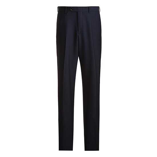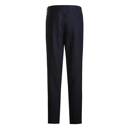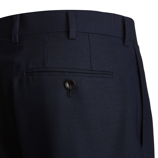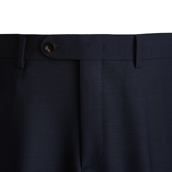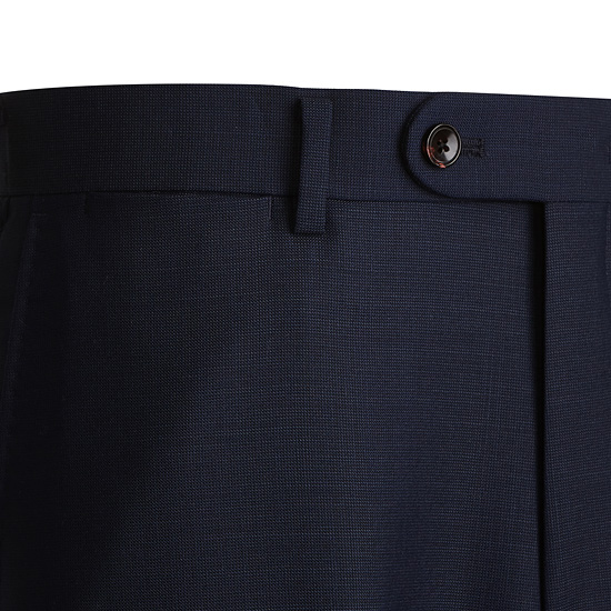 - 블루톤의 마이크로 조직감 원단을 매치한 남성 수트 팬츠.