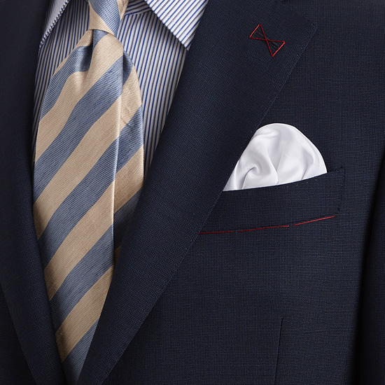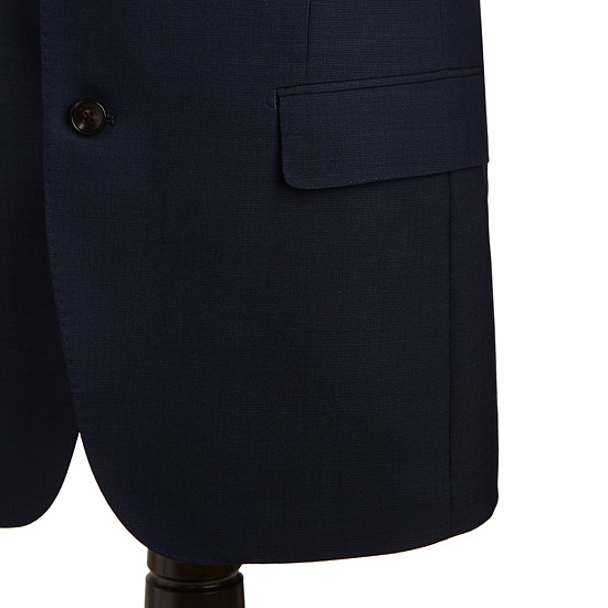 - 기본 노치드 라펠과 플랩 포켓을 적용한 투 버튼 싱글 여밈으로