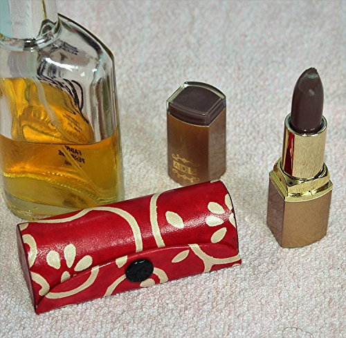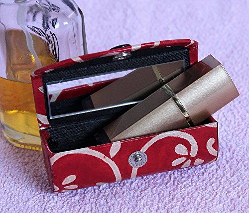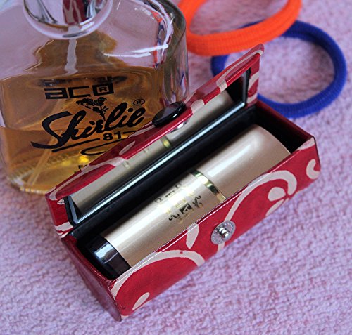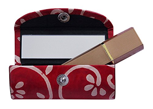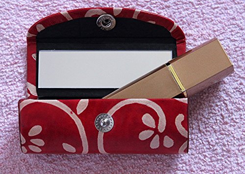 Leather Lipstick Case Holder - Organizer Bag for Purse- lipstick holder- Durable Soft Leather -Cosmetic Storage Kit With Mirror (Red & White)