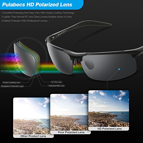 POLARIZED LENS- 100% UV400 protection coating, blocks 100% harmful UVA & UVB Rays. Restore true color, eliminate reflected light and scattered light,make the scenery more clear and soft and protect eyes perfectly. TAC lens includes 7 layers. The 1st layer is polarization layer. The 2nd and 3rd layers are bonding layers to enable durability. The 4th and 5th layers are UV protection layers to absorb UV light. The 6th and 7th layers are shatterproof layers.