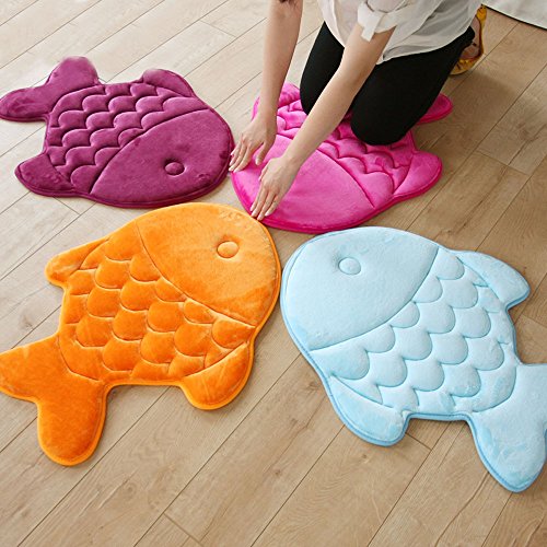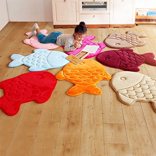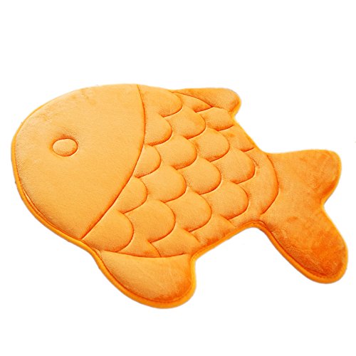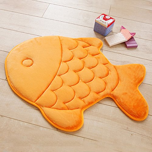 TideTex Soft Girl Room Kid Bath Mat, Cute Memory Foam Fish Shape Home Decoration Area Rug, Bath Room Livingroom Bedside Doormat Foot Pad 2x3 Feet Orange