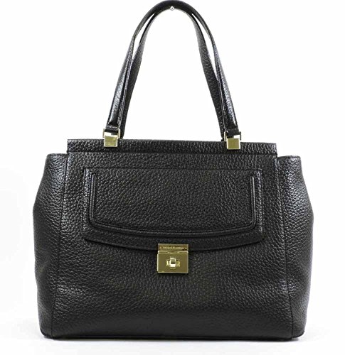 -. Feature : Textured leather with 14-karat gold plated hardware / 15" (L) x 12" (H) x 6.5" (W) / Handles with 8-1/2" drop / Tab-snap closure; front exterior pocket with turnlock closure / Interior features zip, cellphone and multi-function pockets