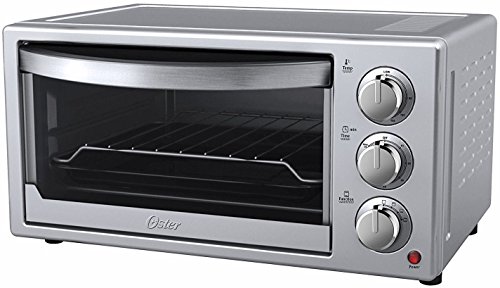 Product Description 6-slice toaster oven by oster. Silver housing with stainless steel front. Convection technology for even and faster baking. Toast,bake and broil functions. 60 minute timer. Oven temperature control. ?ncludes baking pan. Models: tssttvf816. out of box dimensions :12.17"x16.81"x8.93" 0
