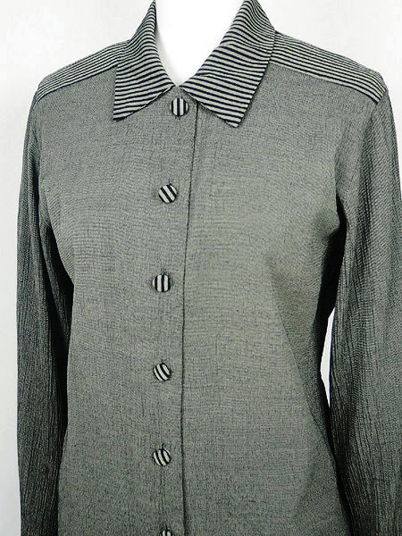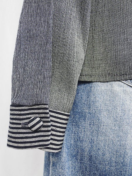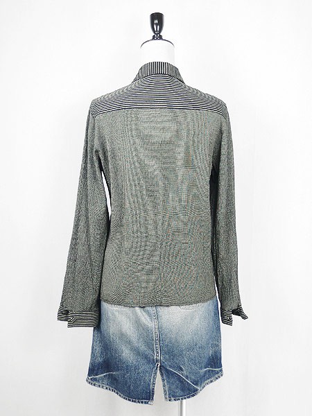 Ladies ブランド カラーグレー・黒 メール便不可 コンディション★★★ モデル- 素材記載なし 表記サイズ記載なし スタッフコメントイエローよりのグレーベース。スリーブのみしわ加工されています。レーヨンのような質感です。 実寸サイズ 着丈 60 cm 身幅 43 cm 肩幅 39 cm 袖丈 59 cm ※ウエスト・ヒップ以外は平置き採寸【code】#c