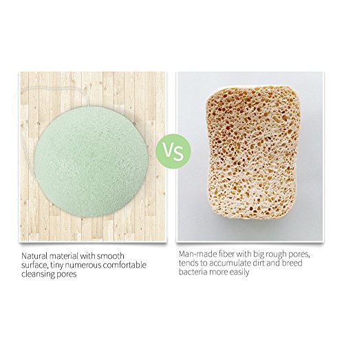 It is made from roots of natural Konjac plants, which is a main material for making jelly. The powder of Konjac roots will go over multiple processes of exacts, steaming freezing and moulding, to let the Konjac fiber foams into countless tiny pores . No plasticizer, chemicals, antiseptic is added. The natural faintly acidity of Konjac is capable to remove dirt shielded deeply inside facial pores, even without applying cleansers, tiny foaming pores intensively clean skin surface, these all benefit healthier skin, improve acne and oily skin. The pores on sponge foam 5 times of foams with same amount cleaners than sponges with man-made fibers, which maximizes cleaning effects with less cleansers.