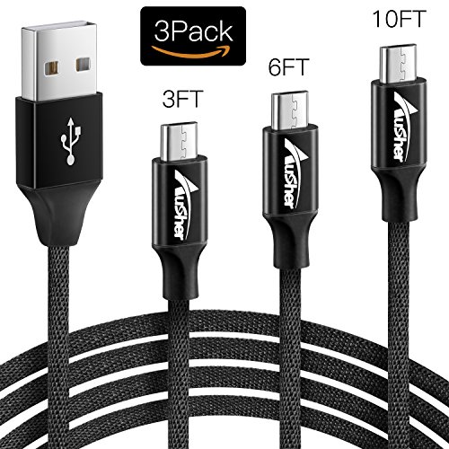 -. Title : Ausher Micro USB Cable [3Pack 3FT/6FT/10FT] Nylon Braided Android Charger Durable Data and Charging cable for Android,Samsung,LG,Sony and More(Black)