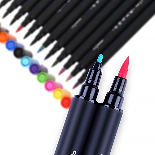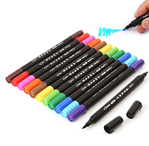 Twin Tips Watercolor Art Markers Coloring Brush Pen, Marker Pens for Coloring Book, Graphic,Drawing,Manga Fashion Design (12 Colors)