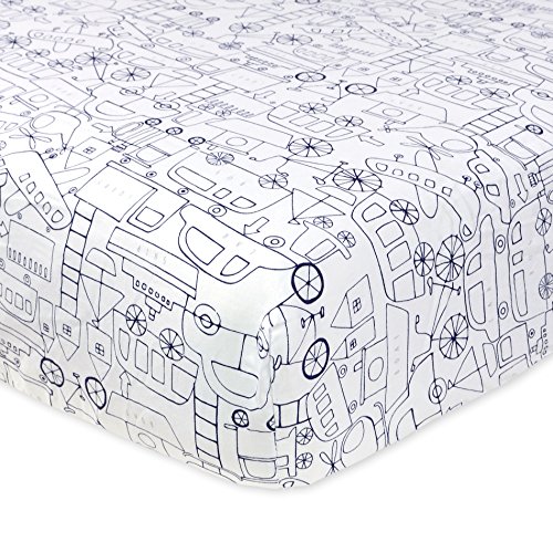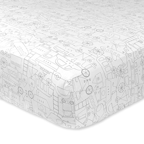 Just Born Cotton Fitted Crib Sheet, Grey/Yellow/White