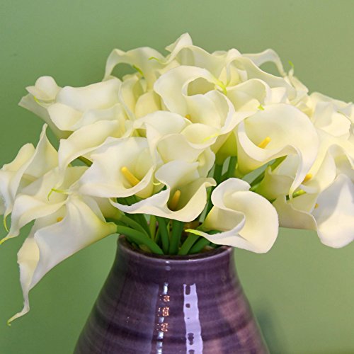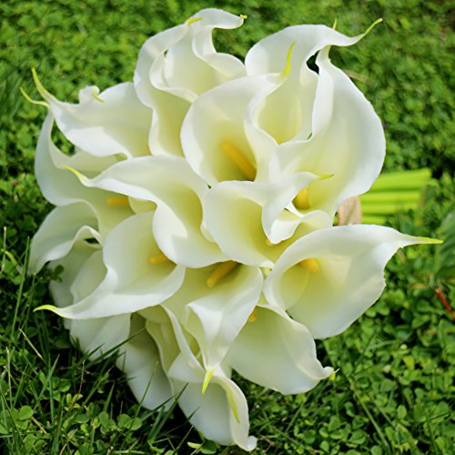 Calla Lily Bridal Wedding Bouquet 20 PCS a Set Flower Bouquets Home Decor Gift (Cream)