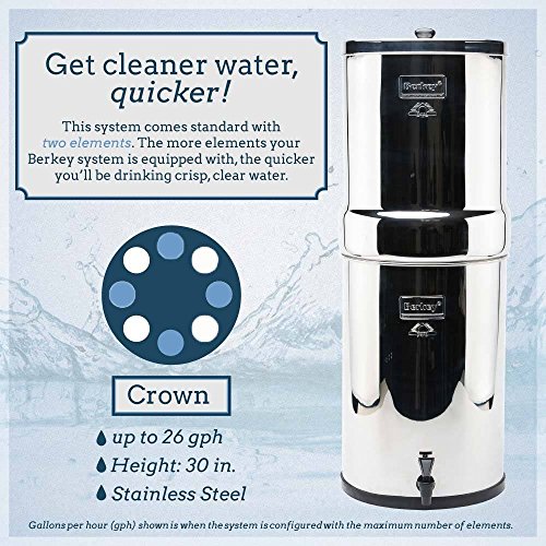 Part Number:CRN8X4-BB Item Weight:14.1 pounds Product Dimensions:11 x 11 x 30 inches Item model number:CRN8X4-BB Material:Stainless steel Item Package Quantity:1 Certification:certified frustration-free Batteries Included?:No Batteries Required?:No Warranty Description:New Millennium Concepts, Ltd. (makers of the Berkey Systems) Warrants this product to be free from defects in materials and workmanship for a period of 6 months from date of purchase. Black Berkey purification elements have a two-year prorated warranty calculated in six months intervals. Not available to ship to California or Iowa. Shipping Weight:14.1 pounds (View shipping rates and policies)