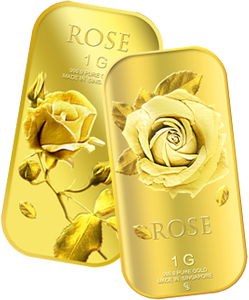 The image of a Small Rose and a Big Rose embossed on a (1g x 2) 999.9 fine gold bar respectively.