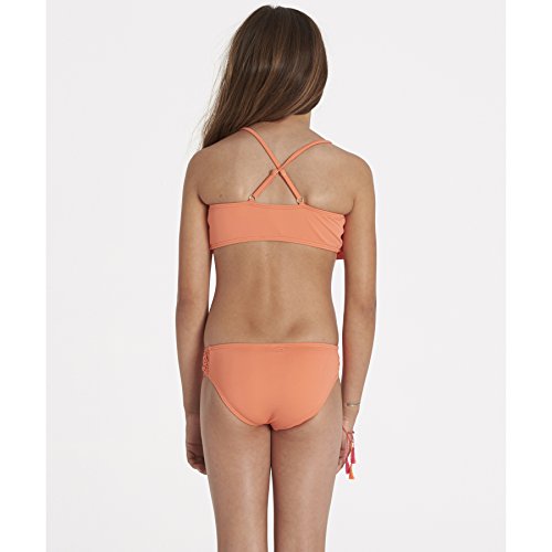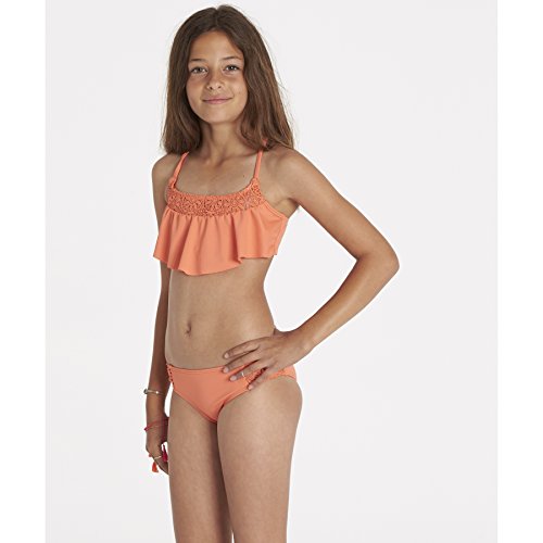 Just beachy flutter top with crochet inset at center front. Crisscross adjustable spaghetti straps at center back. Basic pant with crochet insets at side seams.