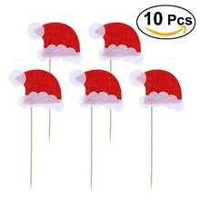 Christmas Cupcake Toppers Picks Felt Santa Hat Party Toppers Decoration Pack of 10