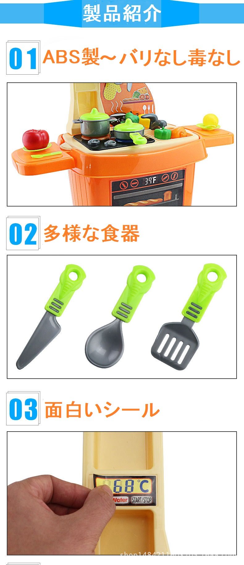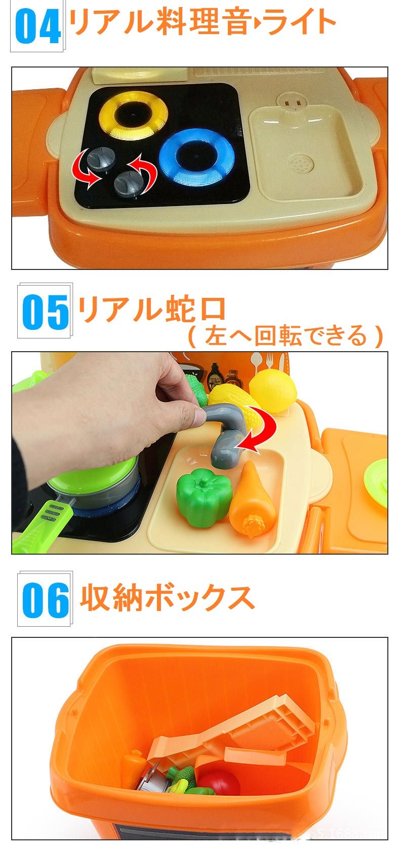 A wide variety of educational toys with real dishes (dishes, pots, knives etc)