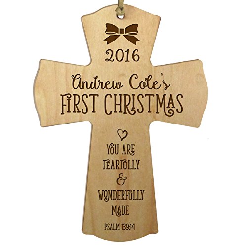 -. Title : Personalized Baby's First Christmas Ornament cross 2016 New Parent gift ideas for newborn boys and girls Custom engraved ornament for mom dad and grandparents