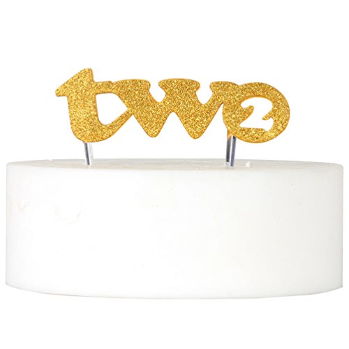 2nd Two Birthday Cake Topper Gold Double Sided Glitter Stock Cake Decoration