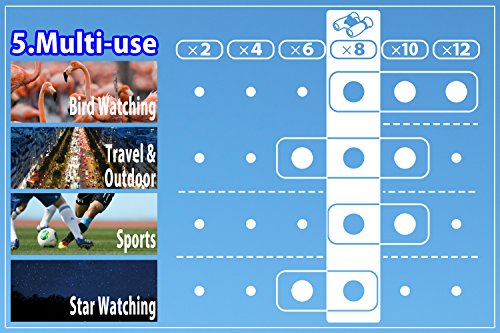 ✓SUPERIOR SAFETY & BUILD QUALITY:If accidentally dropped on the ground, the binoculars are protected from damage with shock proof rubber armor. The eye pieces are also fitted with rubber in order to prevent injury to the eyes.