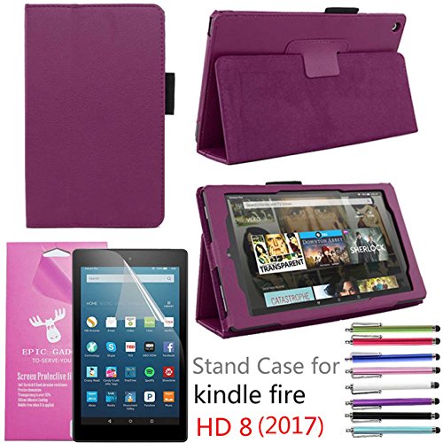 -. Title : Amazon Fire HD 8" 2017 Case, EpicGadget(TM) 7th Generation Fire HD 8 PU Leather Folding Folio Case with Built in Stand For Fire HD 8 inch (2017 Release) + 1 Screen Protector + 1 Stylus
