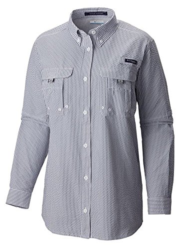 Omni-Shade UPF 30 sun protection. Roll-up sleeves. Vented in back. Quick Dry Fabric. Columbia Women's Super Bahama Long Sleeve Shirt.