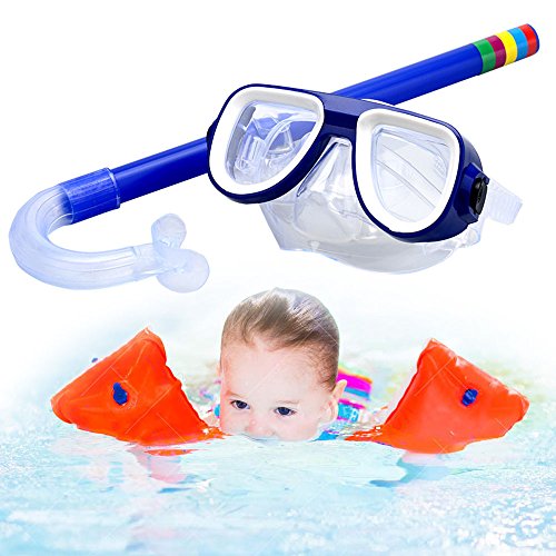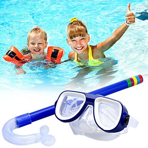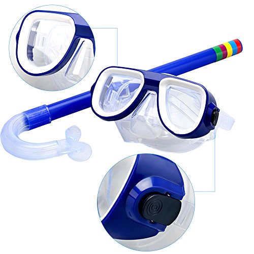 Kids Snorkel Set, Swimming Goggles Semi-dry Snorkel Equipment for Boys and Girls Junior Snorkeling Gear Age 5 Plus (Blue)