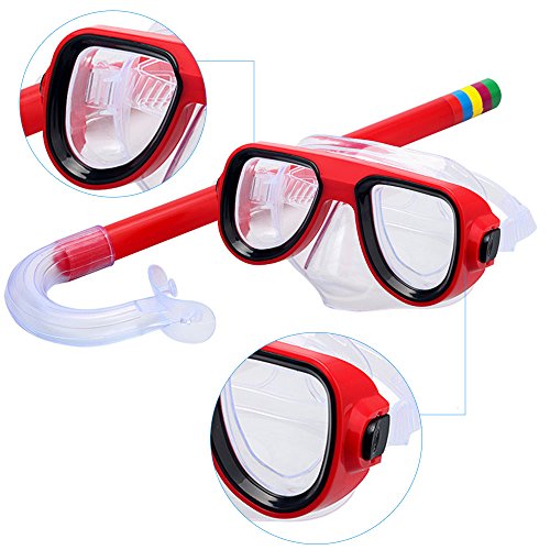 Kids / Children Snorkel Set, Swimming Goggles Semi-dry Snorkel Equipment for Boys and Girls Junior Snorkeling Gear Age 5 Plus (Red)