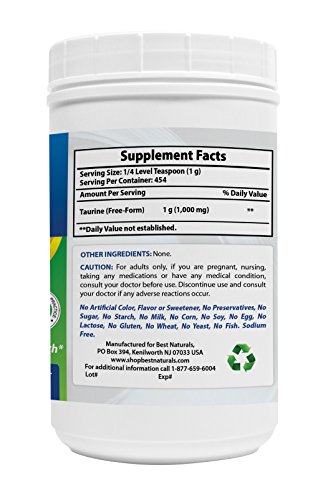 -. Title : Best Naturals 100% Pure Taurine Powder free form - Taurine 1000mg per serving - 1 Lb (454 gm)