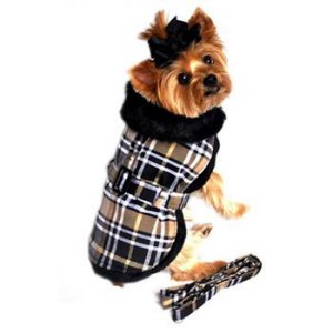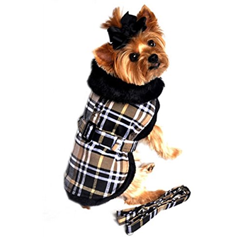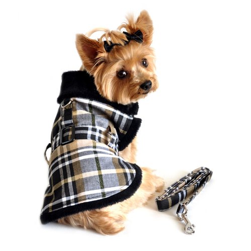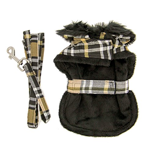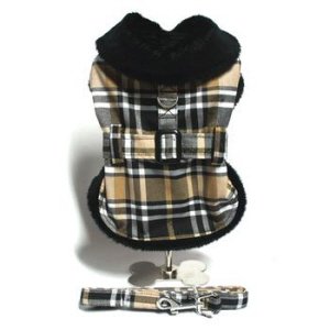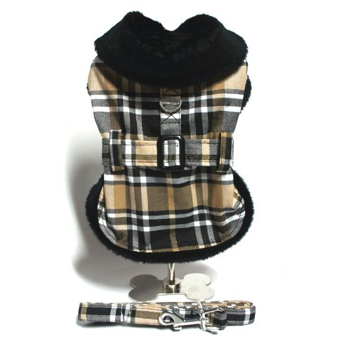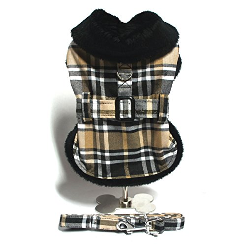 Brown Plaid Classic Dog Coat Harness with Matching Leash XS