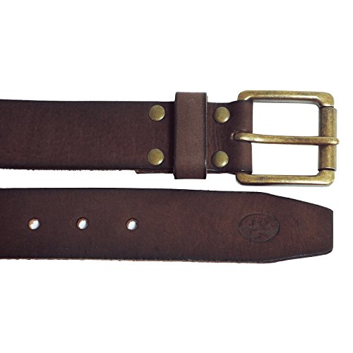 The Adirondack Vintage Men's Belt is made from Finished Buffalo Split Leather. Available in Black to Brown .Brushed nickel buckle