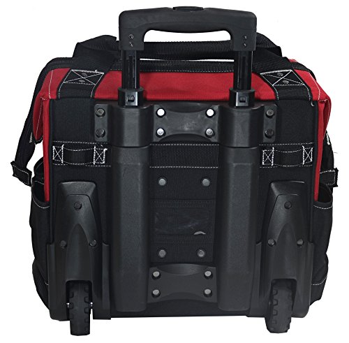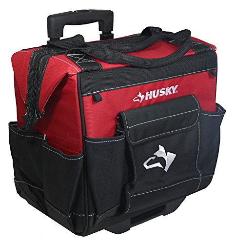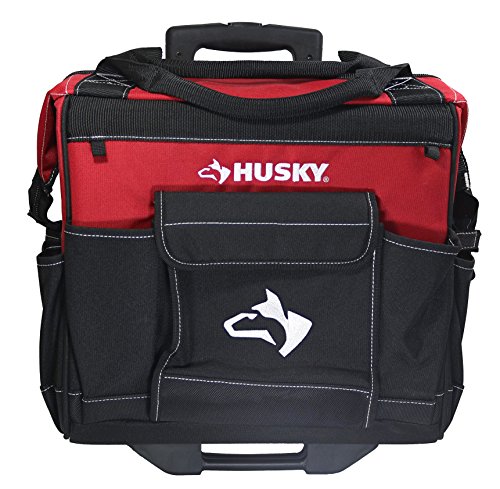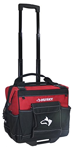 Husky 14 Inch 600-Denier Red Water-Resistant Contractor’s Rolling Tool Tote Bag w/ Telescoping Handle