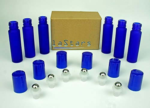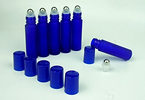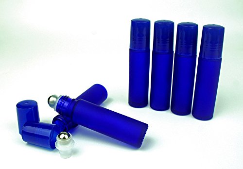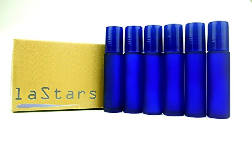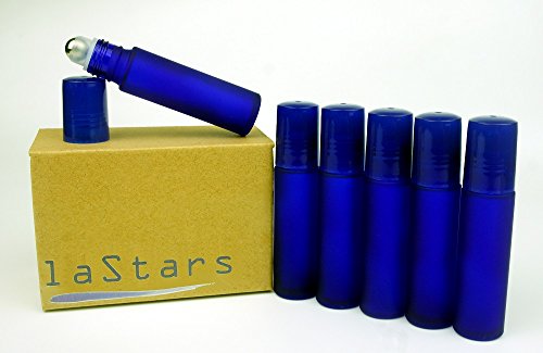 Lastars Best Quality Cobalt Frosted Blue Colored 10ml with Metal Ball Roll-on Applicator and Blue Cap - Set of 6 Pack