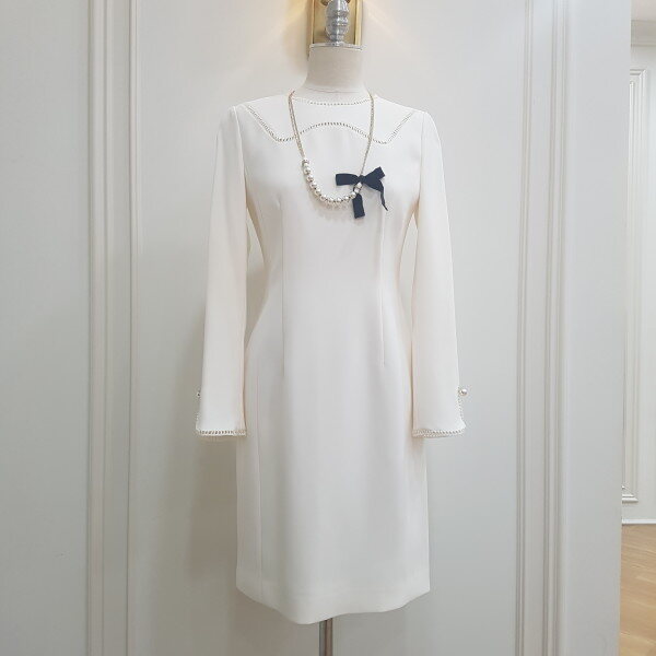 기하학적인 네크라인이 포인트인 H라인 원피스 입니다.