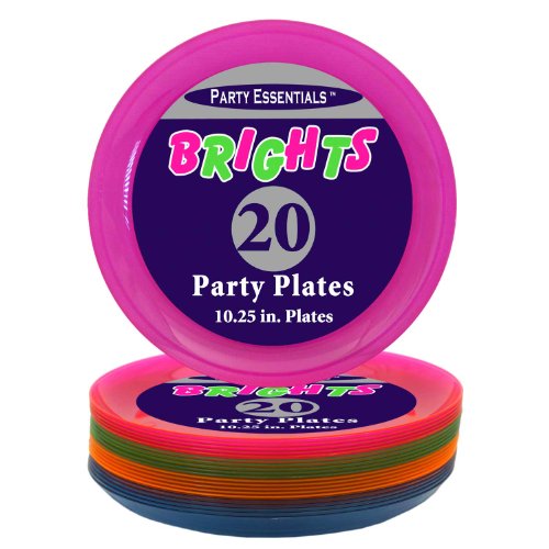Party Essentials N1090 Brights Hard Plastic Round Dinner Party Plate, 10-1/4" Diameter, Assorted Neon (Case of 240)