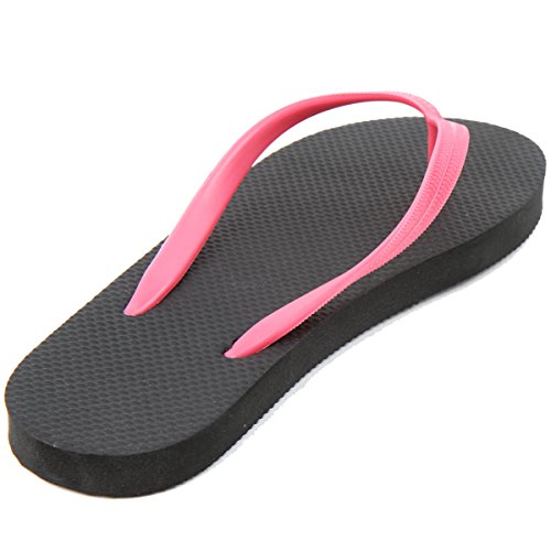 Ohoo Womens Classic Various Color Beach BLACK Rubber Thong Sandals 7 B(M) US