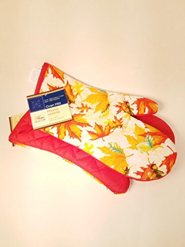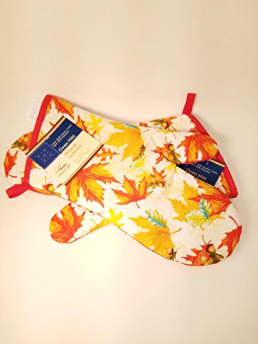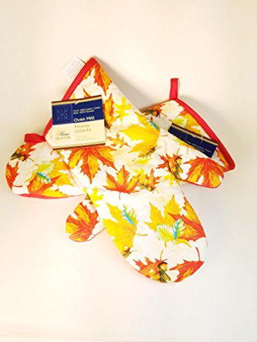 Fall Kitchen Oven Mitts And Towel Golden Color Leaves