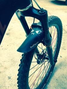 -. Brand : Mudder -. EAN : 0683422214585 -. Feature : The Duck Flap is a mud guard or fender that doesn't rust, rattle, or get loose, but still stops mud, deflects water, intercepts goop, and protects your clothes / A mud flap that doesn't require tools to install / A conversation piece. Your friends will definitely want to know what the heck that thing is for / Fits on Mountain Bikes, Road Bikes, BMX Bikes, Cross Bikes / Wider than most of the competition, so blocks more mud and water -. IsAutographed : 0 -. IsMemorabilia : 0 -. Label : Bike Deals -. Manufacturer : Bike Deals -. MPN : MF -. PackageQuantity : 1 -. PartNumber : MF -. ProductGroup : Sports -. ProductTypeName : OUTDOOR_RECREATION_PRODUCT -. Publisher : Bike Deals -. Studio : Bike Deals -. Title : Bicycle Mud Guard - Duck Flap is like a Fender. Works on Front or Rear of bike. No tools to install. -. UPC : 683422214585