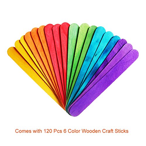 PAXCOO 120 PCS JUMBO COLORED CRAFT STICKS WITH 100PCS STICKY BACK COINS