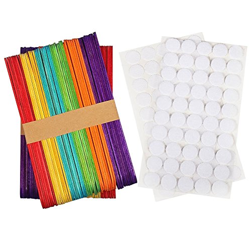 WHAT YOU GET - Package includes 120 colored popsicle sticks and 50 sets hook and loop coins. Add these to your arts and crafts supplies