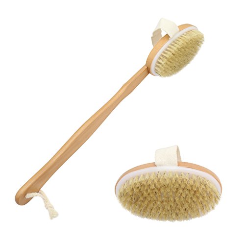MAGGIFT Removable Natural Boar Bristle Long Handle Body Brush For Dry Skin Brushing, Remove Dead Skin And Toxins, Scrub And Exfoliation Shower...