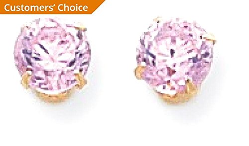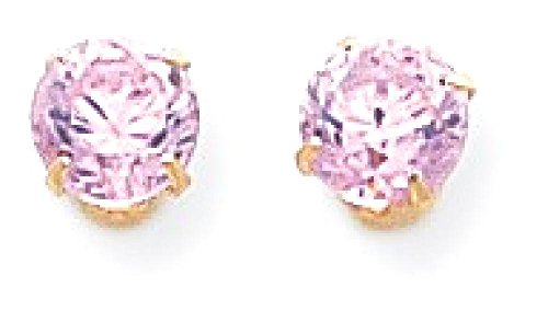 ICECARATS DESIGNER JEWELRY 14K YELLOW GOLD 5MM PINK CUBIC ZIRCONIA CZ POST STUD EARRINGS