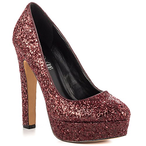 Get pretty in the Passarello. ALDO presents a glam silhouette with red rock glitter and rounded toe. You'll shine with every step taken in the 5 1/2 inch block heel and 1 inch platform.Feature