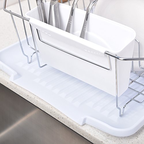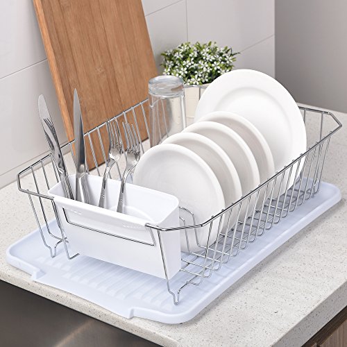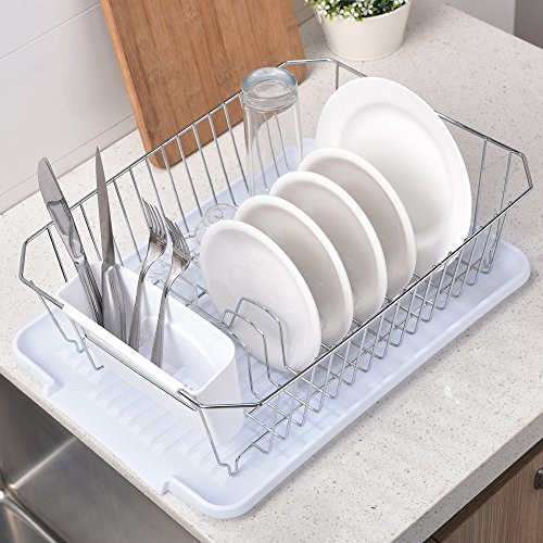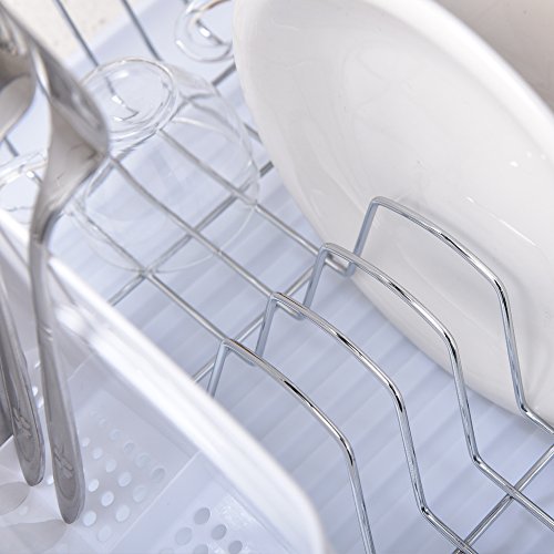 Wtape Modern Steel Rust Proof Kitchen Draining Dish Drying Rack, Chrome Dish Rack With White Drainboard