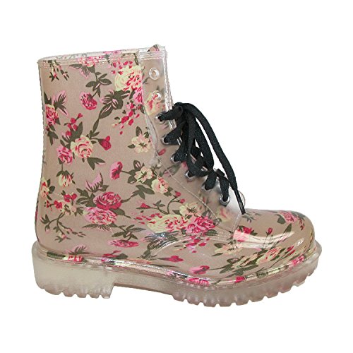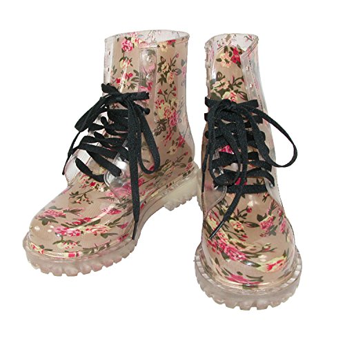 Cecilia Undercover Womens Pink Floral Totally Jelly Clear Rain Boots