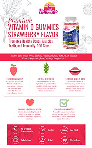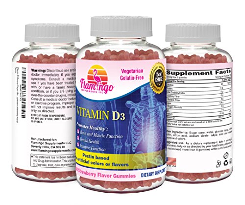 -. Title : Flamingo Supplements- Natural Vitamin D3 Gummies- 800IU Serving, GMO-Free, Vegetarian, NO Gelatin or Gluten, Kosher and Halal. For Women Men and Kid’s Skeletal and Immune Health. 100 Count