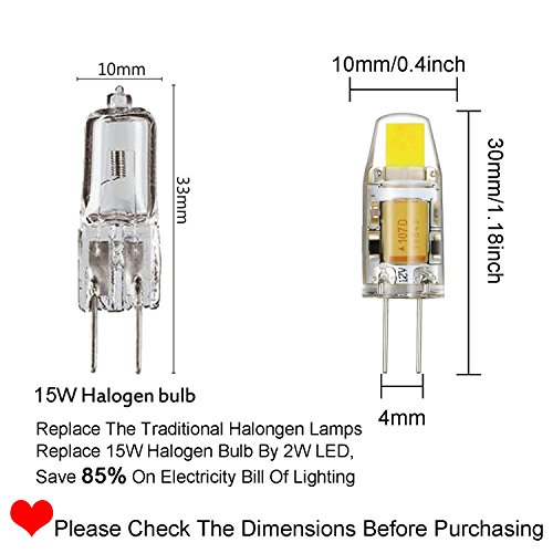 Rayhoo 6pcs G4 COB LED Light Bulb 2W AC/DC 12V Non-dimmable Equivalent to 15W T3 Halogen Track Bulb Replacement