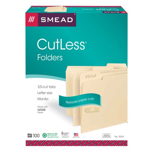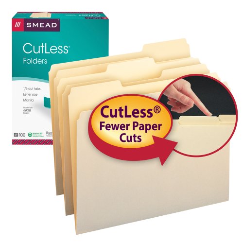 -. Title : Smead CutLess File Folder, 1/3-Cut Tab, Letter Size, Manila, 100 Per Box (10341)