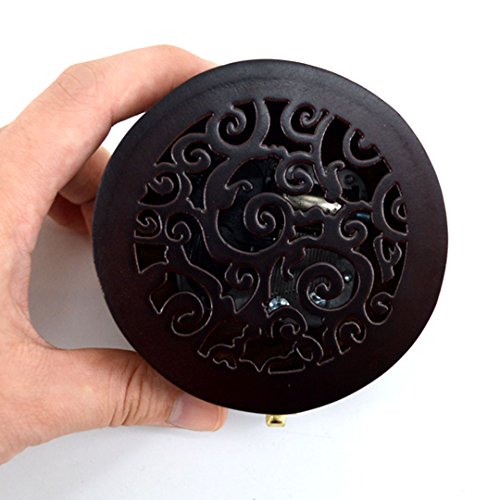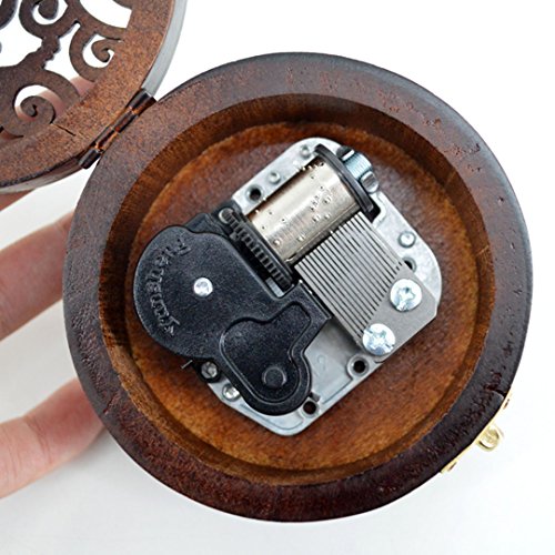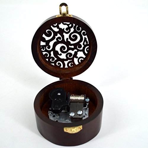 Kennedy Hollow Round Clockwork Music Box Classic Wooden Musical Box Tune is Castle in the Sky
