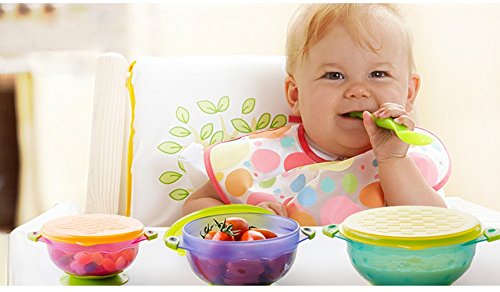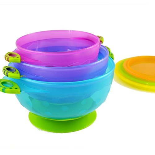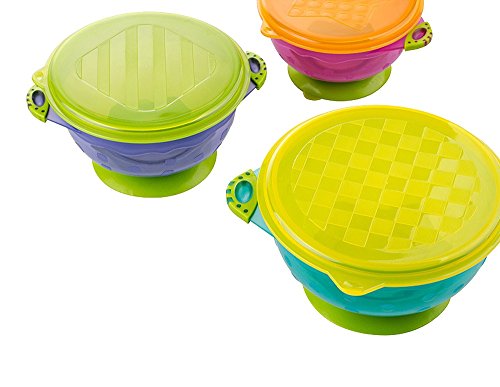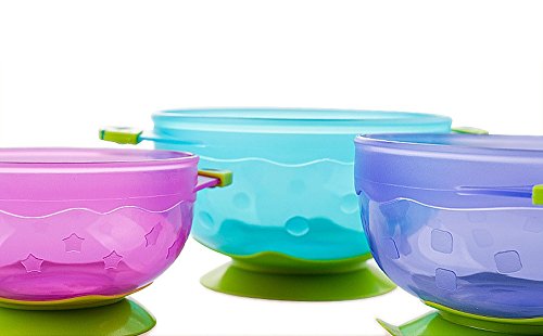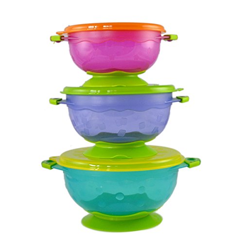 -. Binding : Baby Product -. Brand : Foryee -. EAN : 0711091880166 -. Feature : Less mess and stress because this Spill-proof design has a superior suction base that makes it very difficult for a baby or toddler to spill their food / Has an easy-pull tab to release the vacuum seal and make the removal very easy for adults and all the bowls are dishwasher and microwave safe / This 3-pack comes with 3 sizes and colors that are stackable for easy storage; also they come with snap-on lids to make it easy to keep leftovers for later / Because Luv Your Baby offers a 30-Day, money-back guarantee, you can use this product for up to a month, and if you don't like it, you can return it for a full refund / For best results, get the suction cup a little damp in order to maximize the suction and keep those little hands from knocking the bowl from the table or high chair -. Label : Foryee -. Manufacturer : Foryee -. ProductGroup : Baby Product -. ProductTypeName : BABY_PRODUCT -. Publisher : Foryee -. Studio : Foryee -. Title : Foryee 3 Count Spill Proof and Stay Put Suction Baby Bowl Set -. UPC : 711091880951